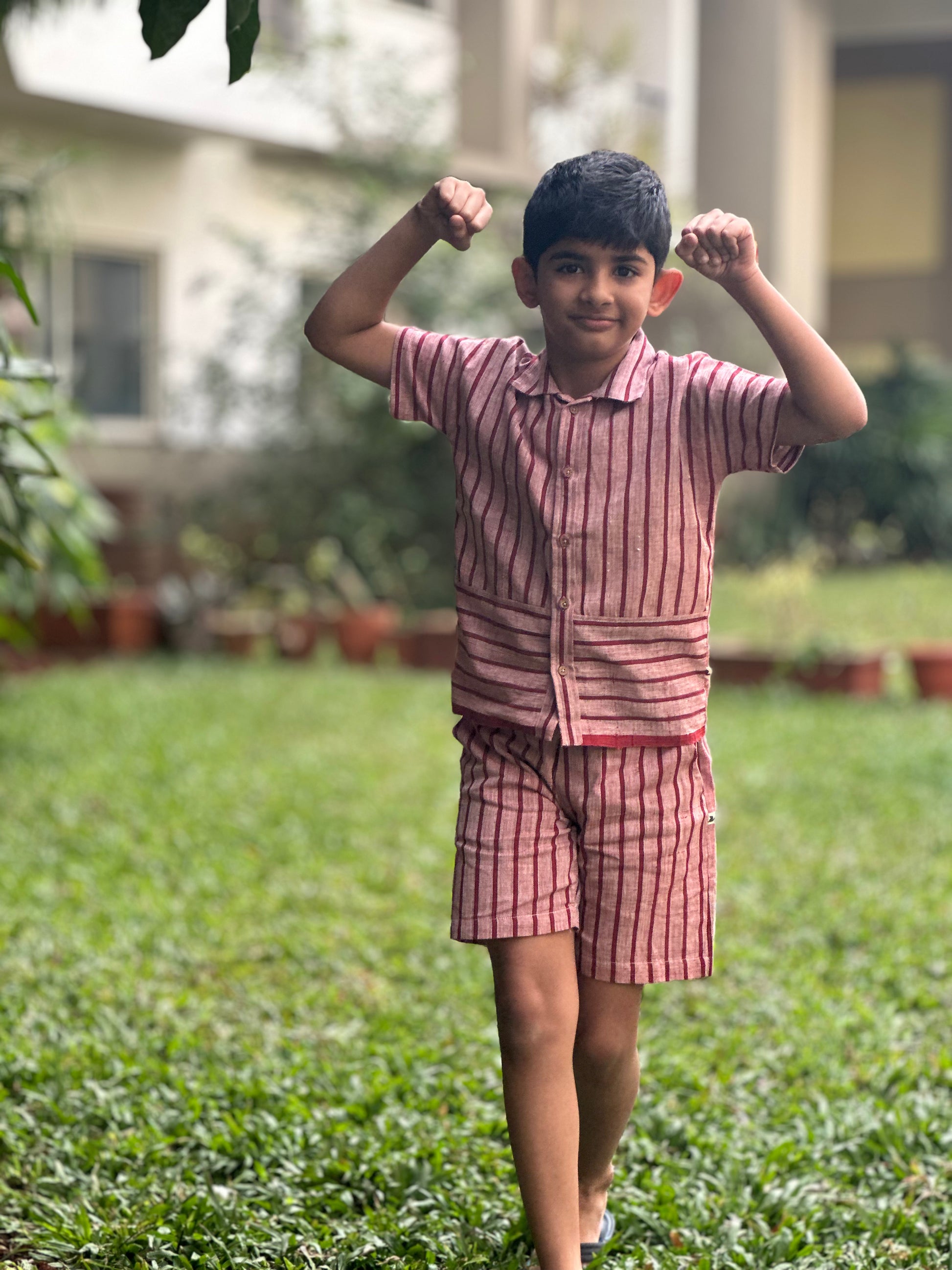 Our Handloom Coord Set is crafted from soft handloom cotton and dyed with chemical-free, natural colors. Lightweight, breathable, and ultra-comfy, it keeps little ones feeling fresh and free all day. Perfect for play, naps, and everything in between!
